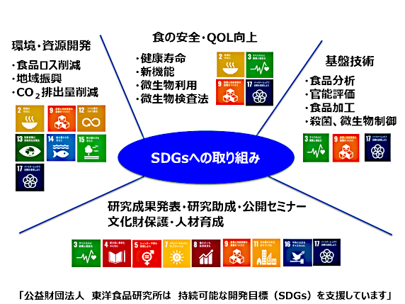 東洋食品研究所は、食品に関する基礎研究と応用研究を行い、また食品科学と教育を広く助成し、学術と文化の発展に寄与します。